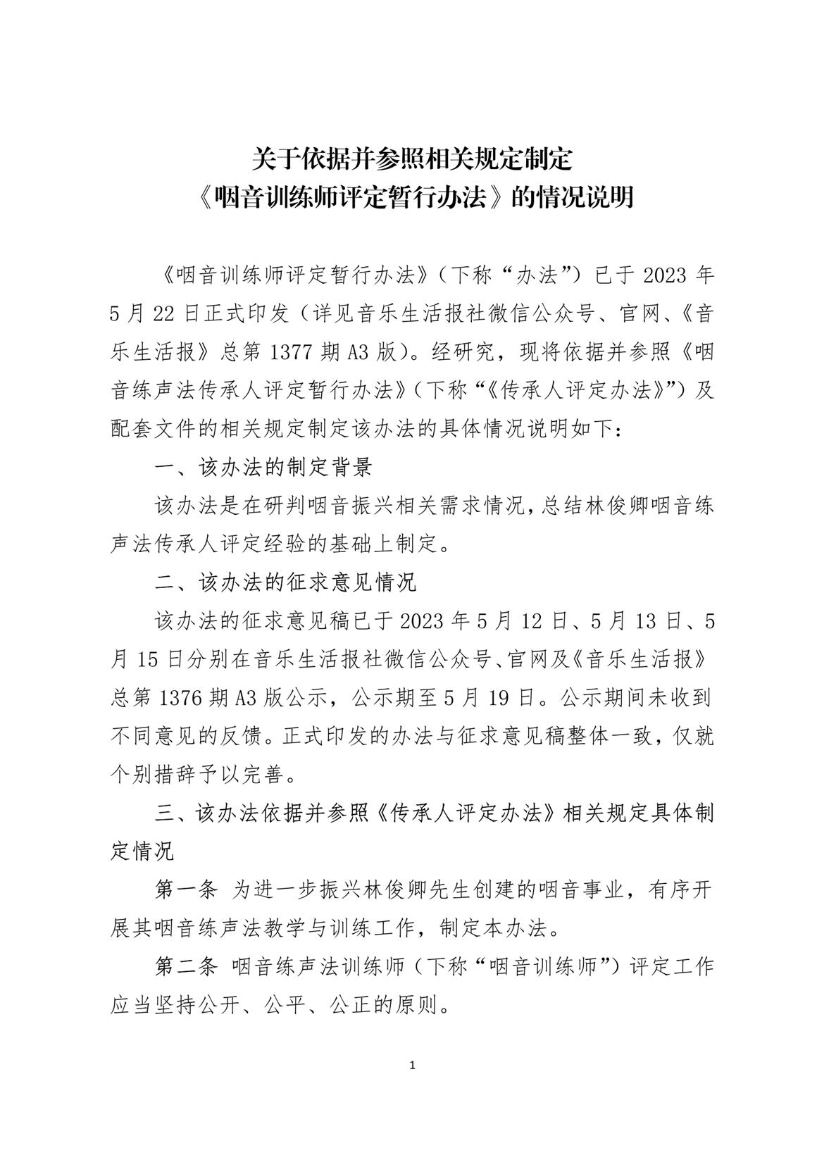 關(guān)于依據(jù)并參照相關(guān)規(guī)定制定《咽音訓(xùn)練師評(píng)定暫行辦法》的情況說明