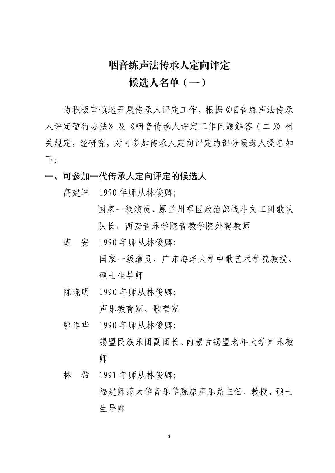 咽音練聲法傳承人定向評定候選人名單(一)